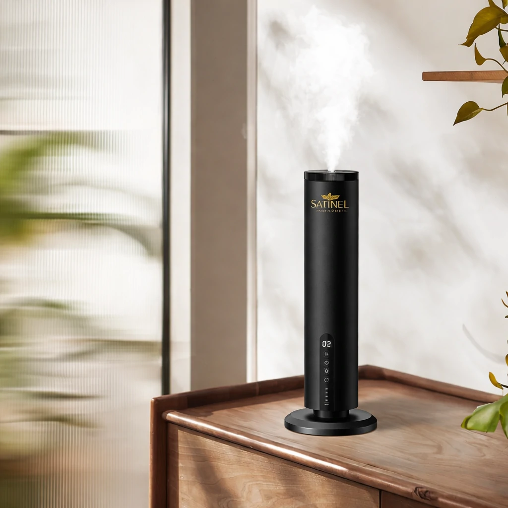 SATINEL CLOUD BLACK to nowoczesny dyfuzor zapachowy klasy premium, który łączy elegancki design z zaawansowaną technologią dyfuzji zapachu. Dzięki smukłej formie typu tower oraz wykonaniu z wysokiej jakości aluminium urządzenie doskonale prezentuje się zarówno w nowoczesnych wnętrzach domowych, jak i w biurach czy butikach.